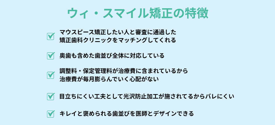 ウィ・スマイル矯正とは、厳しい審査を通過した提携クリニックが予約できる矯正歯科のポータルサイトです。